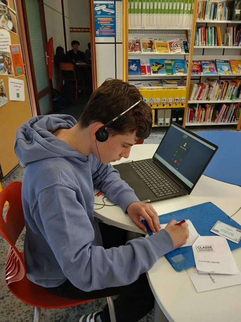 A la suite d’un fait relaté par un flash info, ils ont enquêté par groupe de 3 ou 4. Avec les indices recueillis, ils ont rédigé une intervention qu’ils ont dû filmer comme s’ils jouaient le rôle de journalistes en duplex sur les lieux de l’évènement. Cette activité permet de mettre en action plusieurs compétences abordées dans le cadre du cours de français.